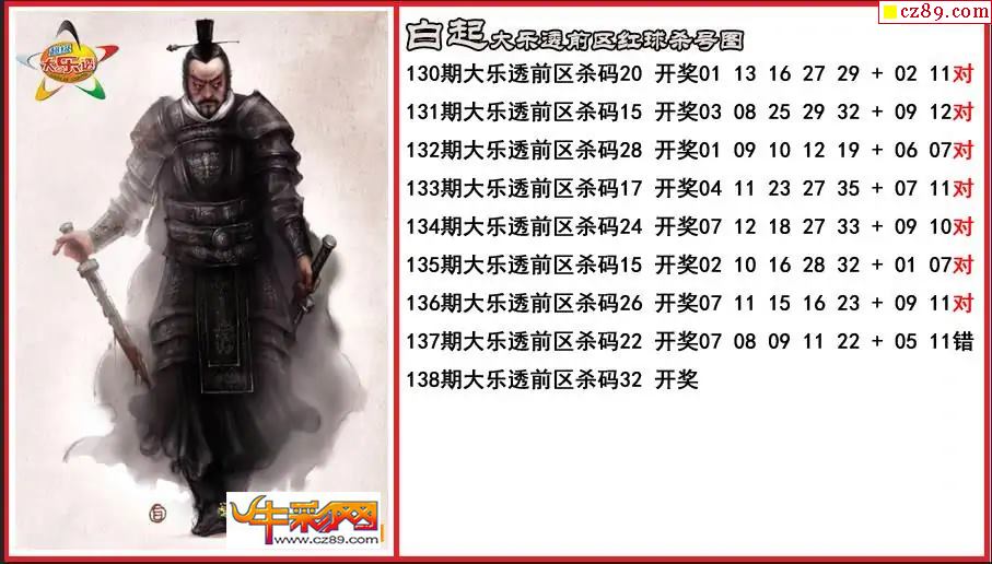 > 大乐透138期白起前区杀号图
